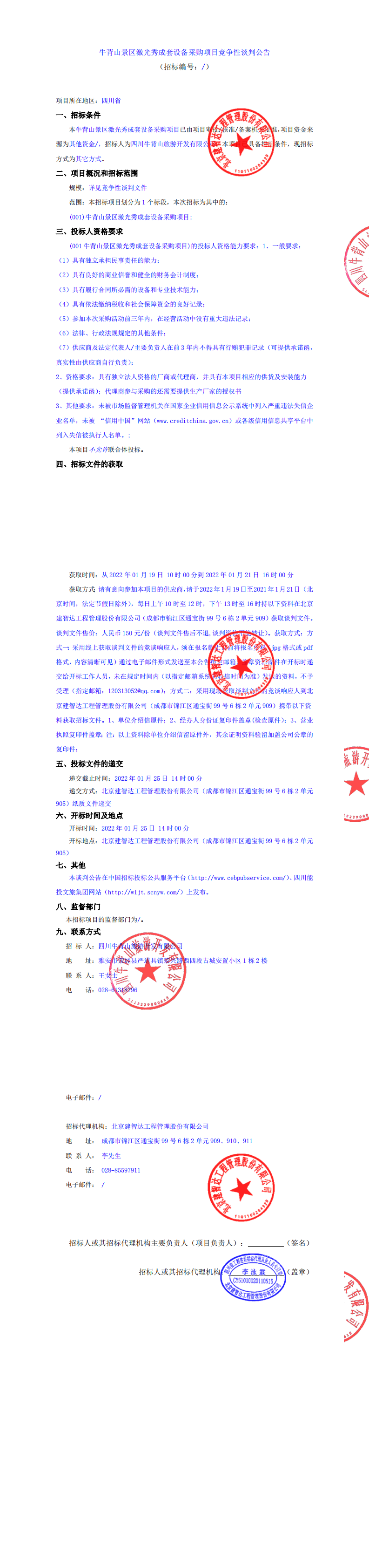 牛背山景区激光秀成套设备采购项目竞争性谈判公告
