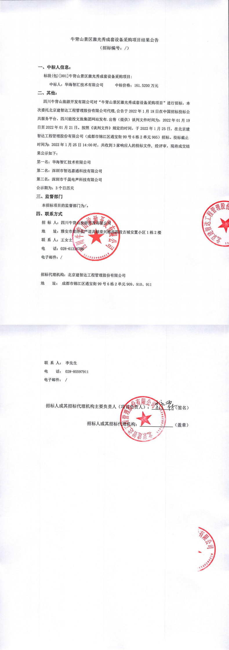 牛背山景区山顶停车场AAA旅游厕所建设工程项目成交结果公告