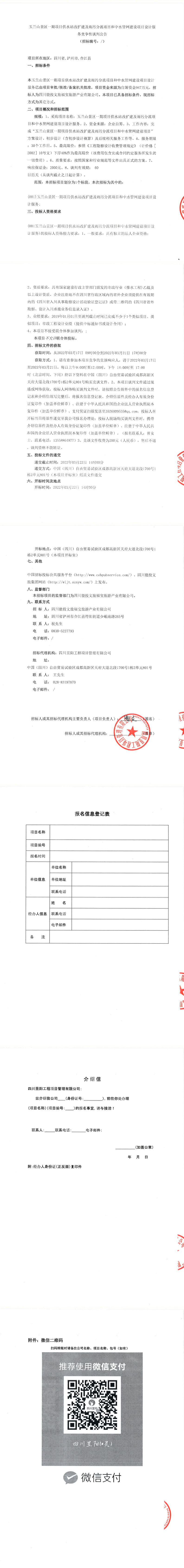 玉兰山景区一期项目供水站改扩建及雨污分流项目和中水管网建设项目设计服务竞争性谈判更正公告