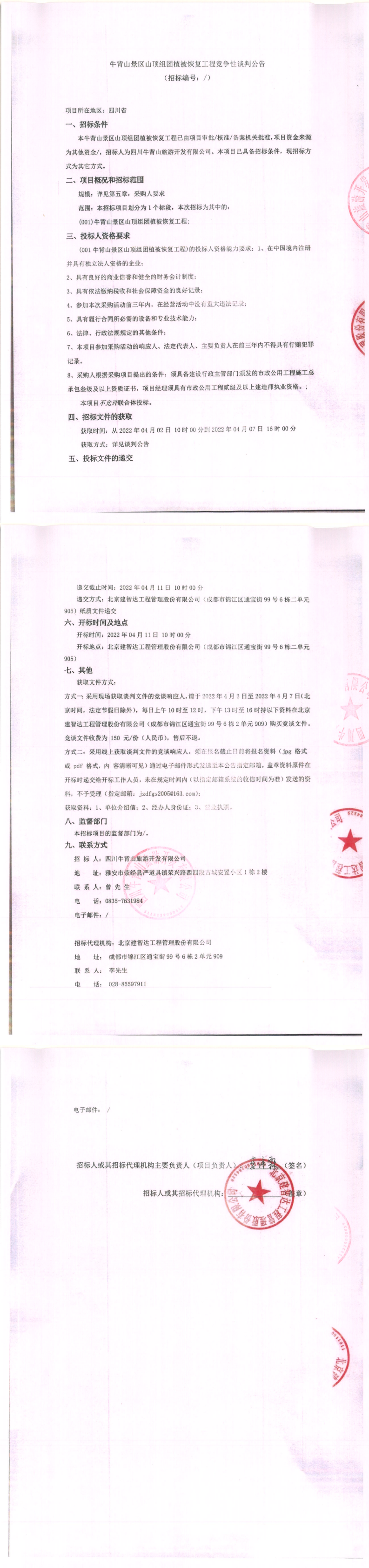 牛背山景区山顶组团植被恢复工程竞争性谈判公告