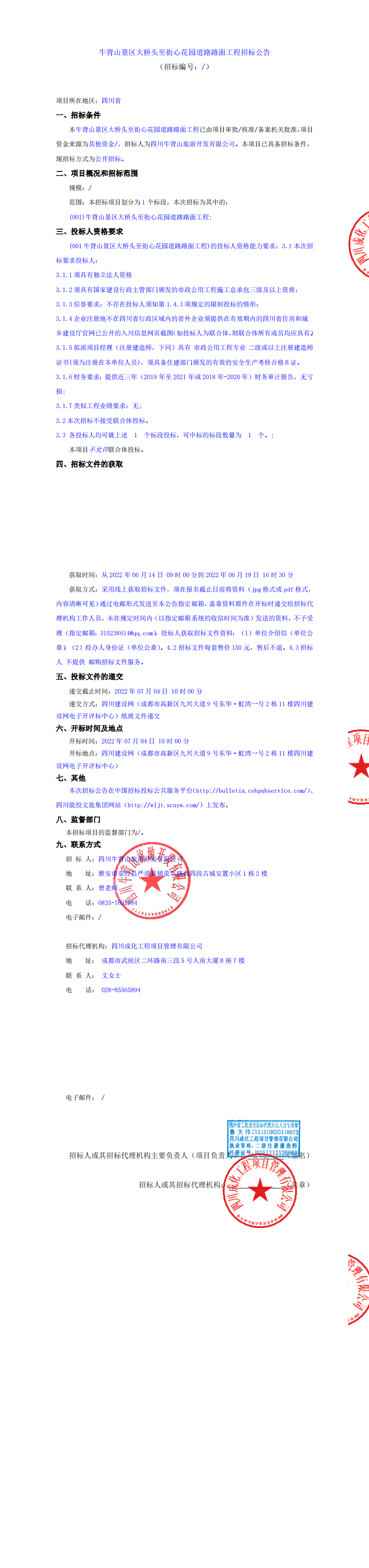 牛背山景区大桥头至街心花园道路路面工程招标公告
