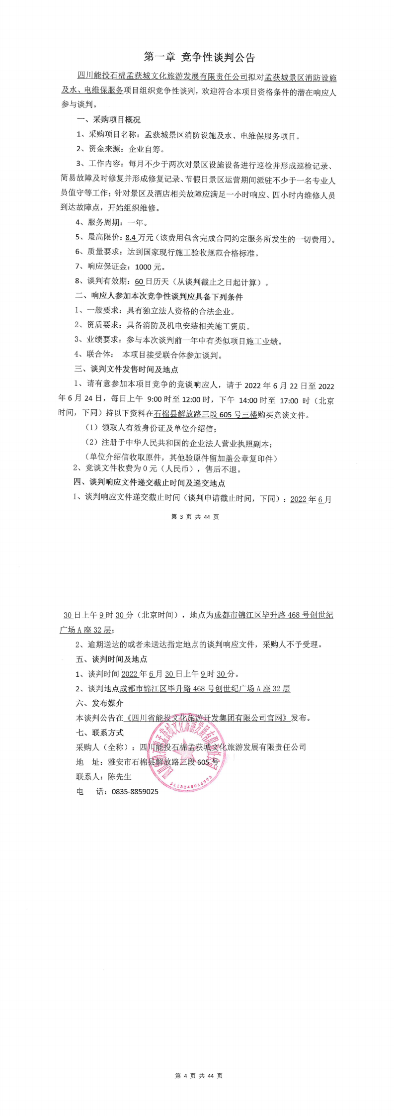 孟获城景区消防设施及水、电维保服务项目竞谈公告
