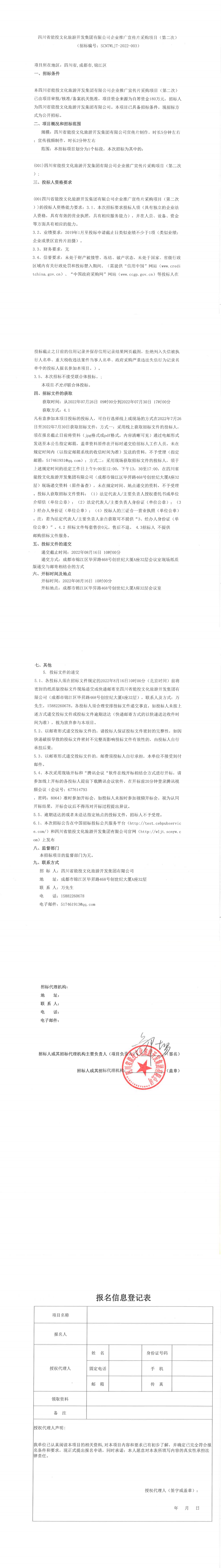 四川省能投文化旅游开发集团有限公司企业推广宣传片采购项目(第二次)招标公告