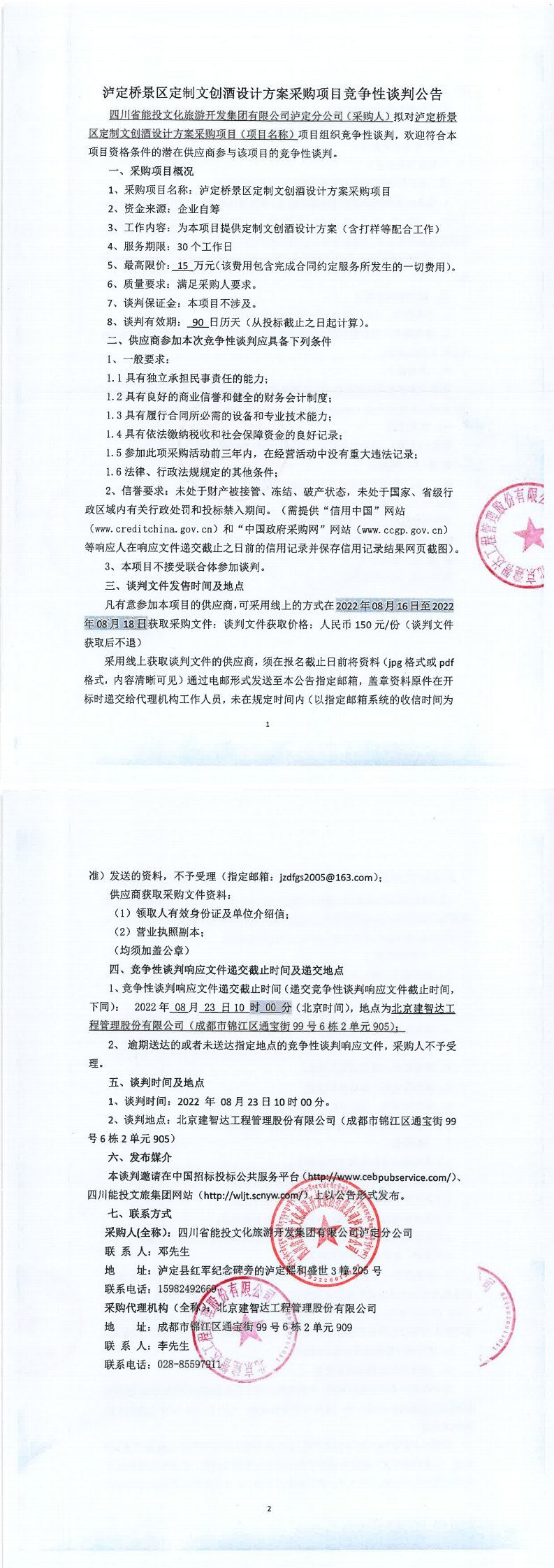 泸定桥景区定制文创酒设计方案采购项目竞争性谈判公告