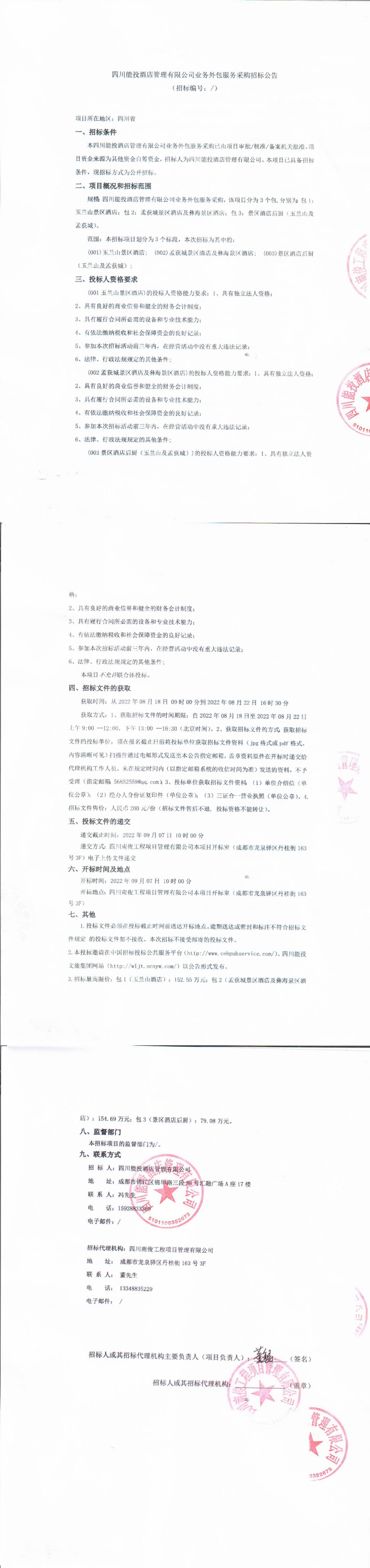 四川能投酒店管理有限公司业务外包服务采购招标公告