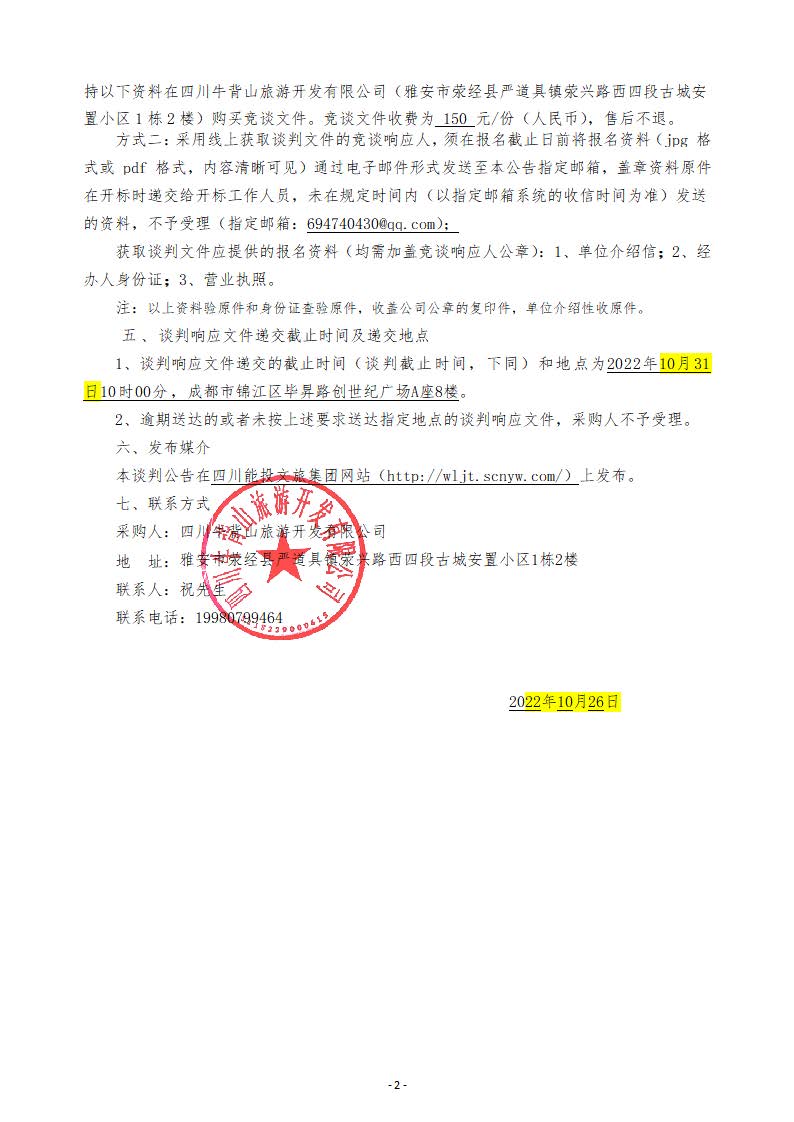牛背山景区游客温馨提示标识设计、制作、安装项目竞争性谈判公告