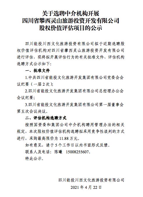 关于选聘中介机构开展四川省攀西灵山旅游投资开发有限公司股权价值评估项目的公示