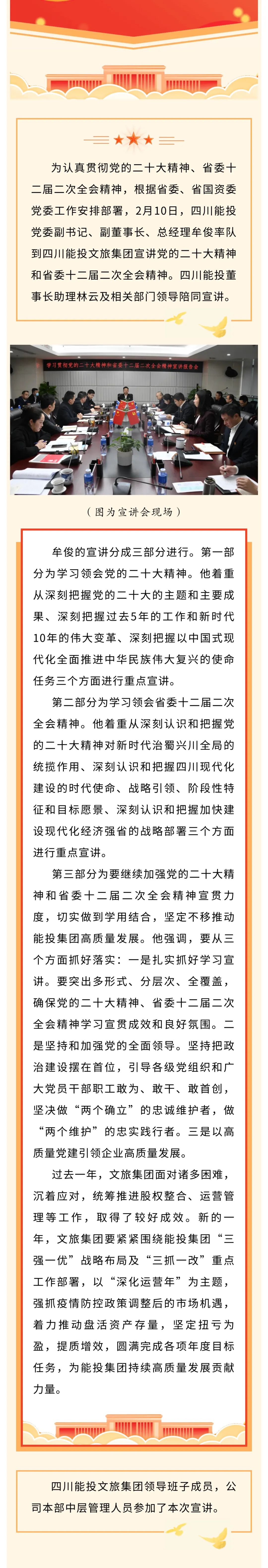 牟俊总经理到四川能投文旅集团宣讲党的二十大精神和省委十二届二次全会精神